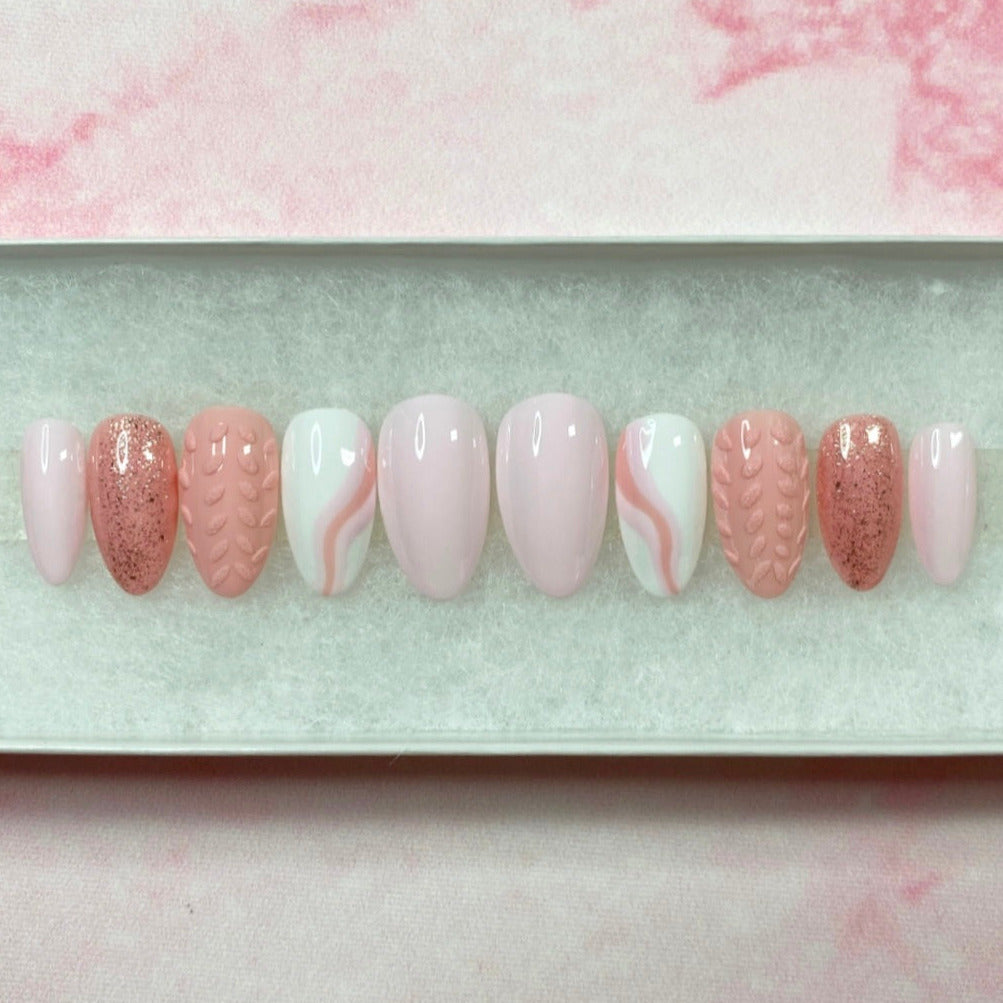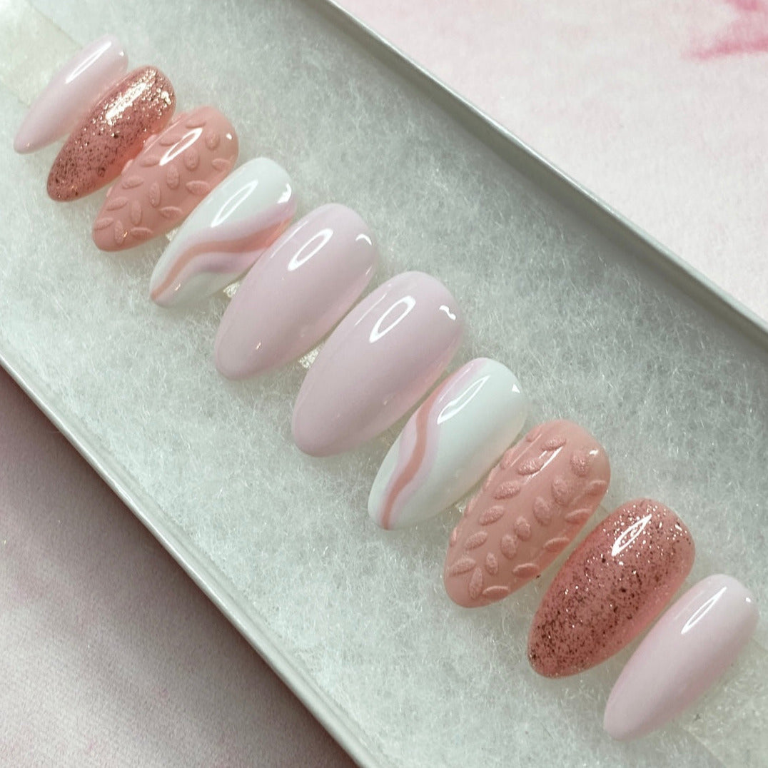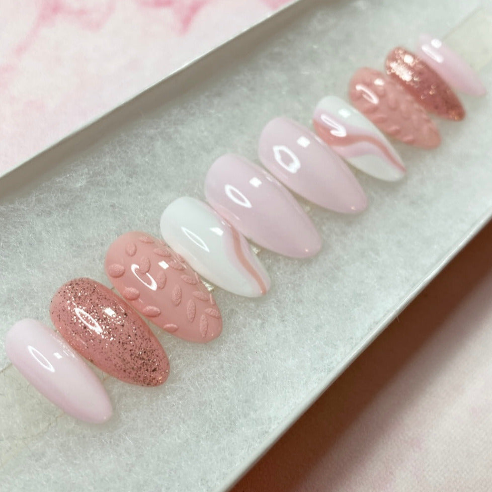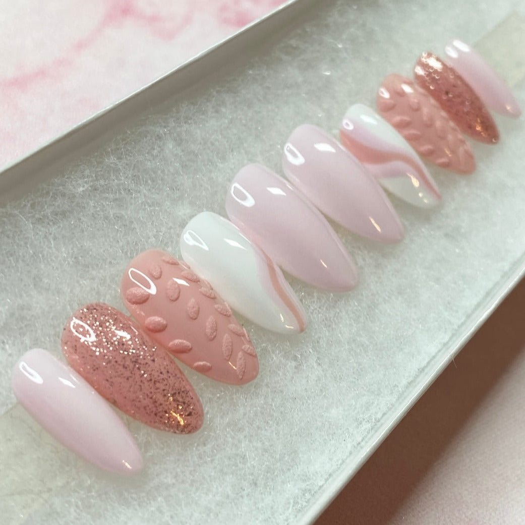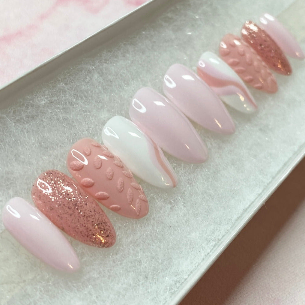 ✨Candy Cuddles✨ A Blend of Soft Pinks and Whites, Blush Pink 3D Sweater Design, Candy-Coloured Swirls, and a Touch of Glitter
