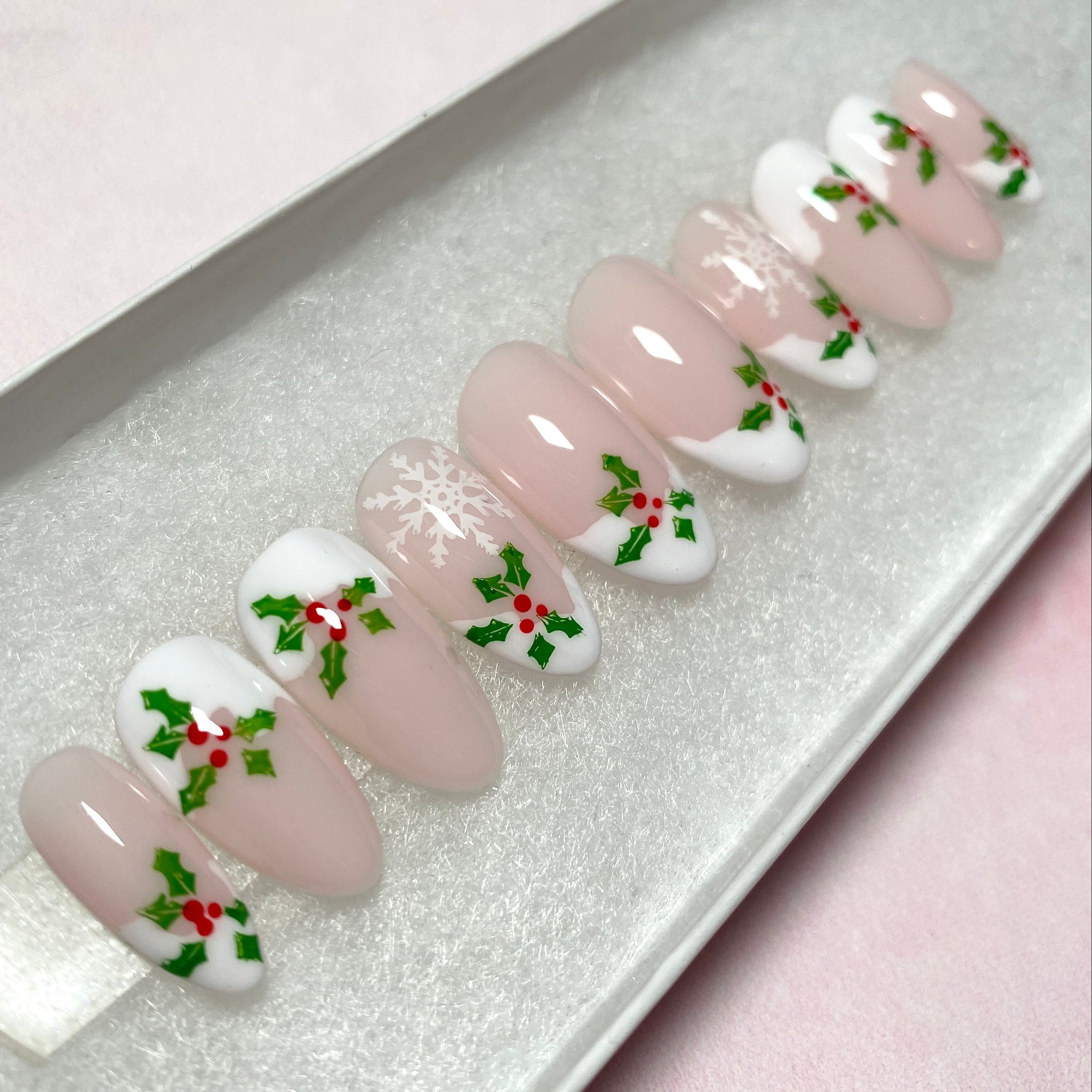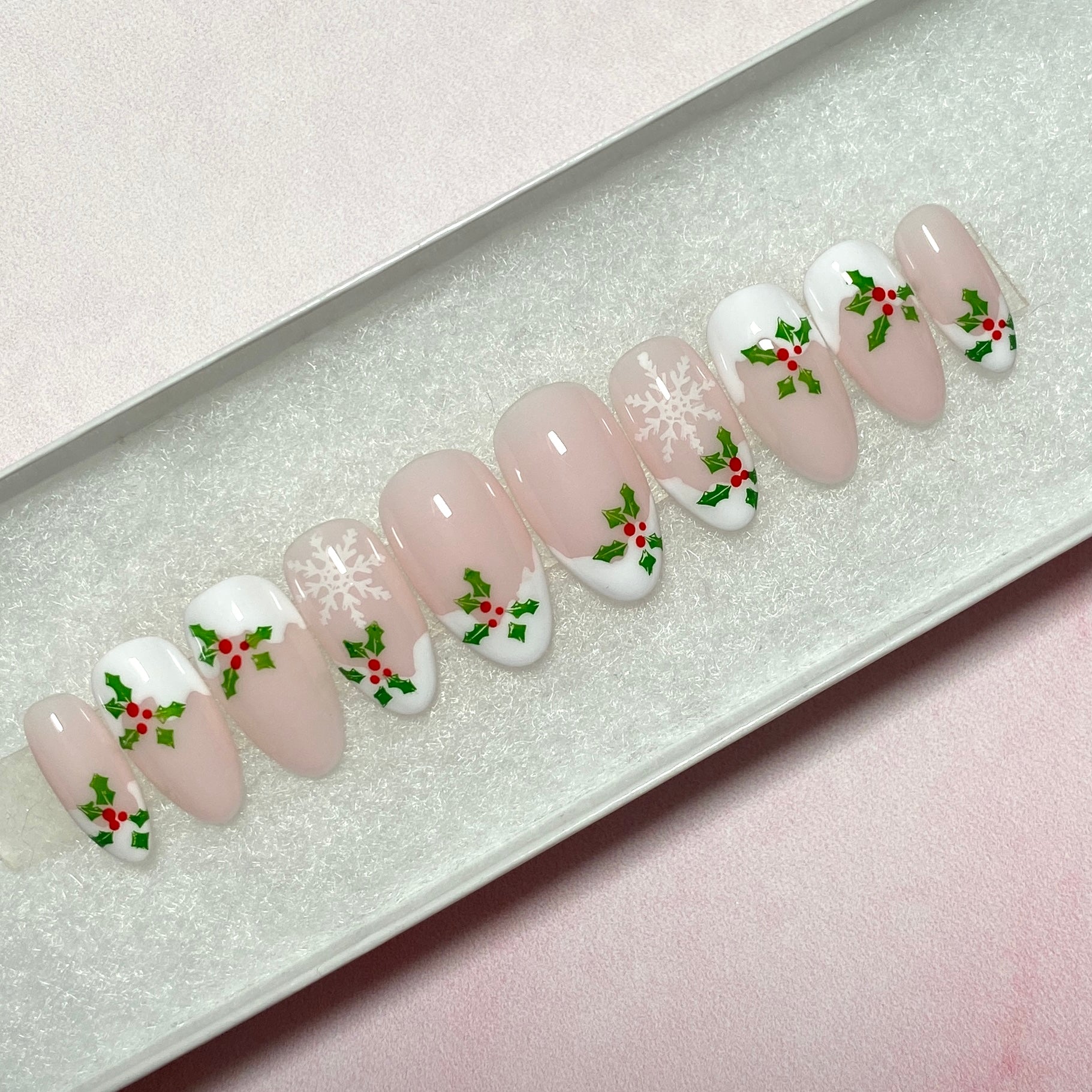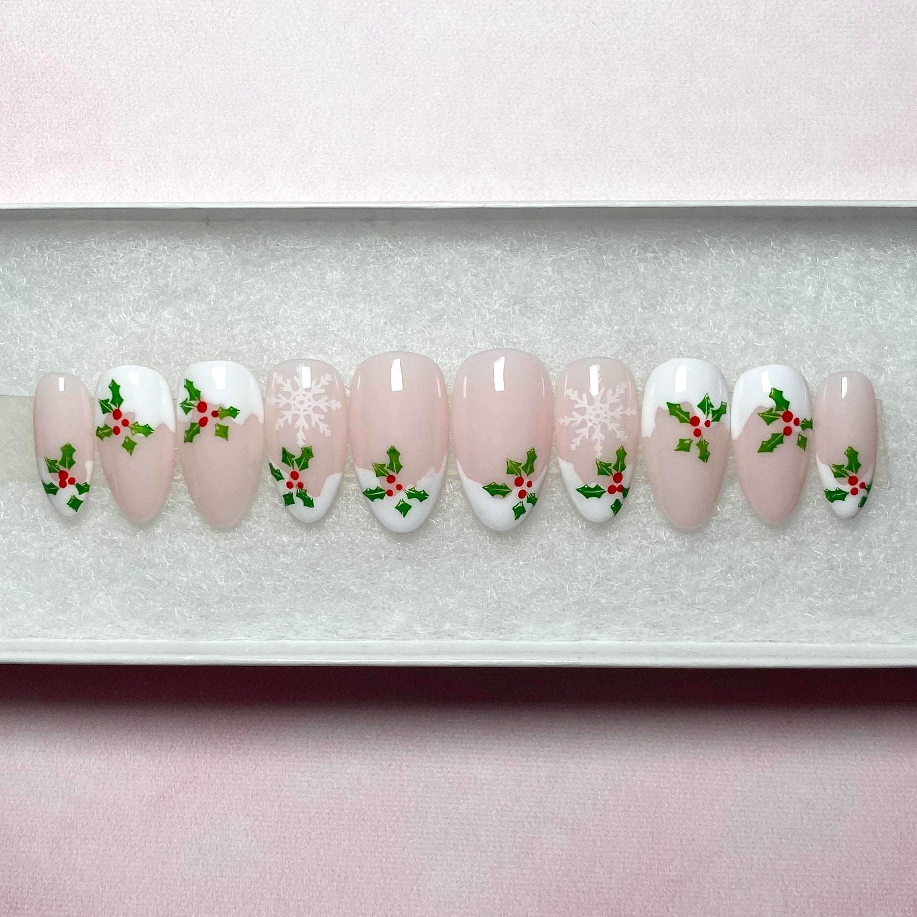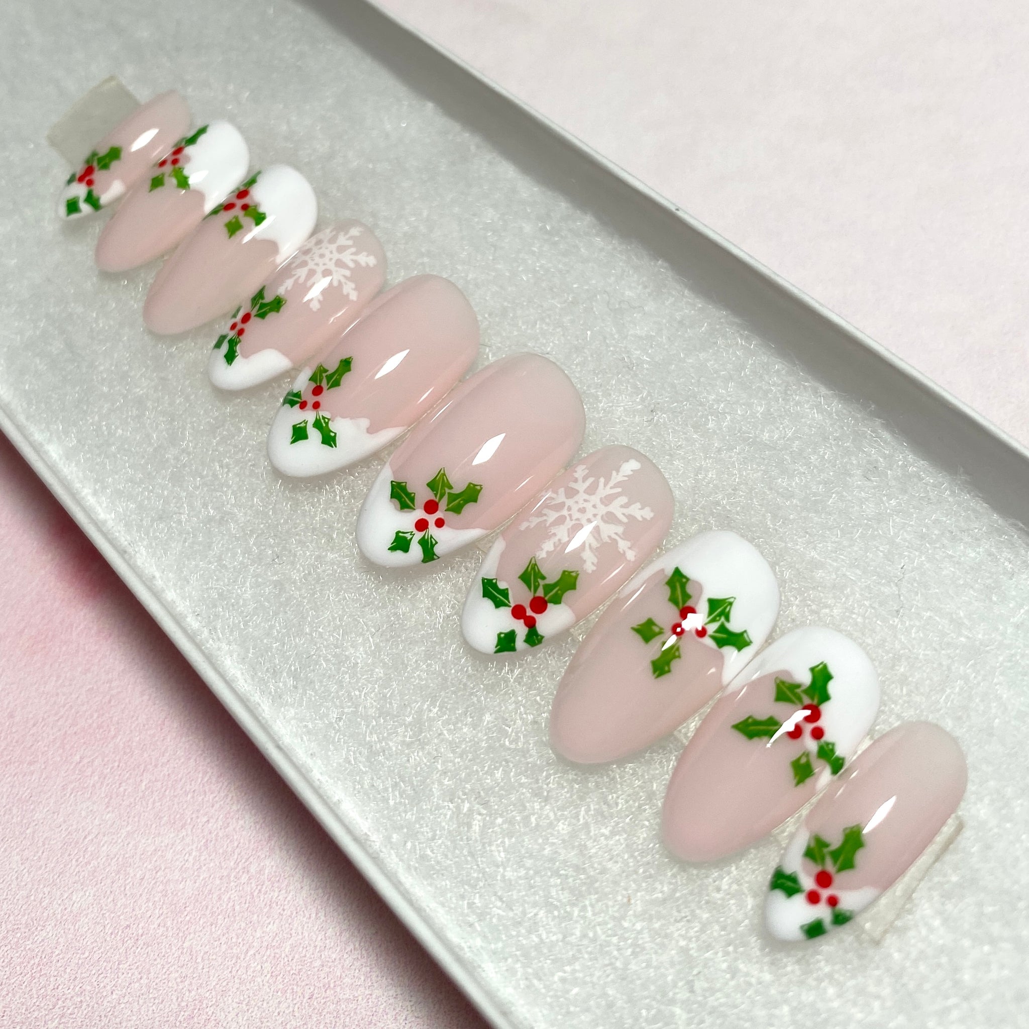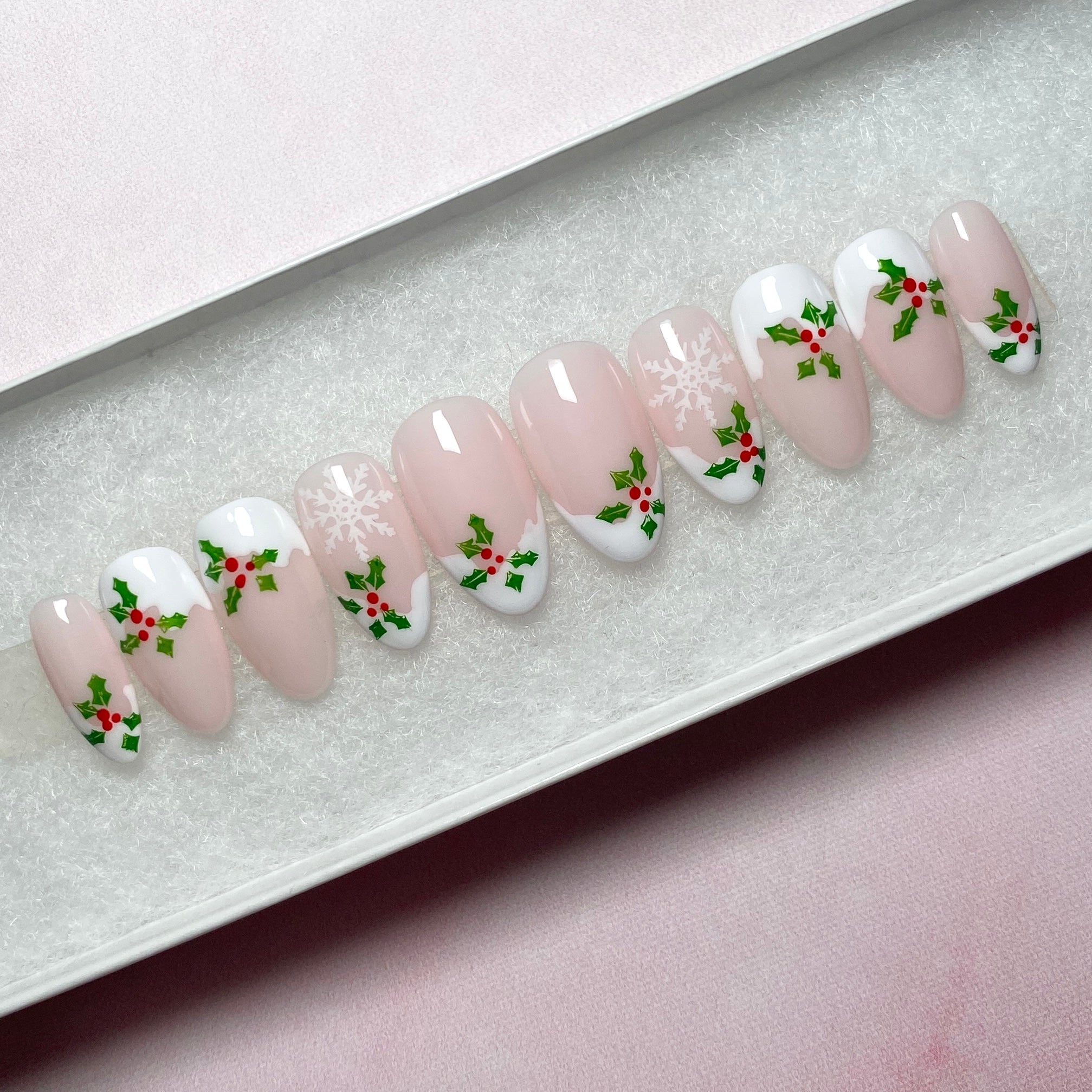 ✨Frosted Holly✨ Snow-Form French Tips with Delicate Holly and White Snowflakes Design