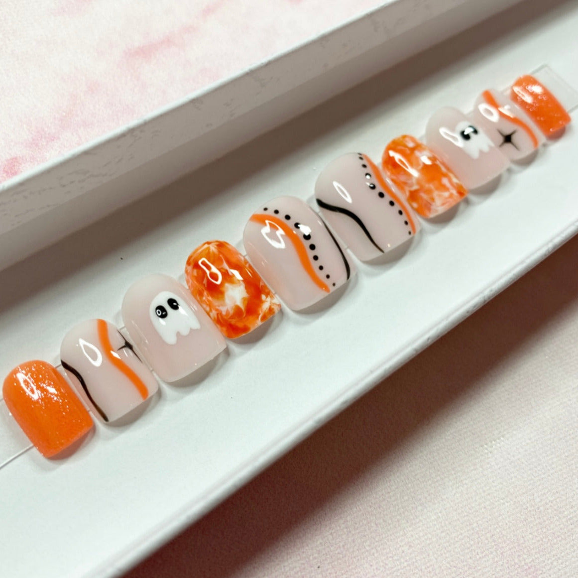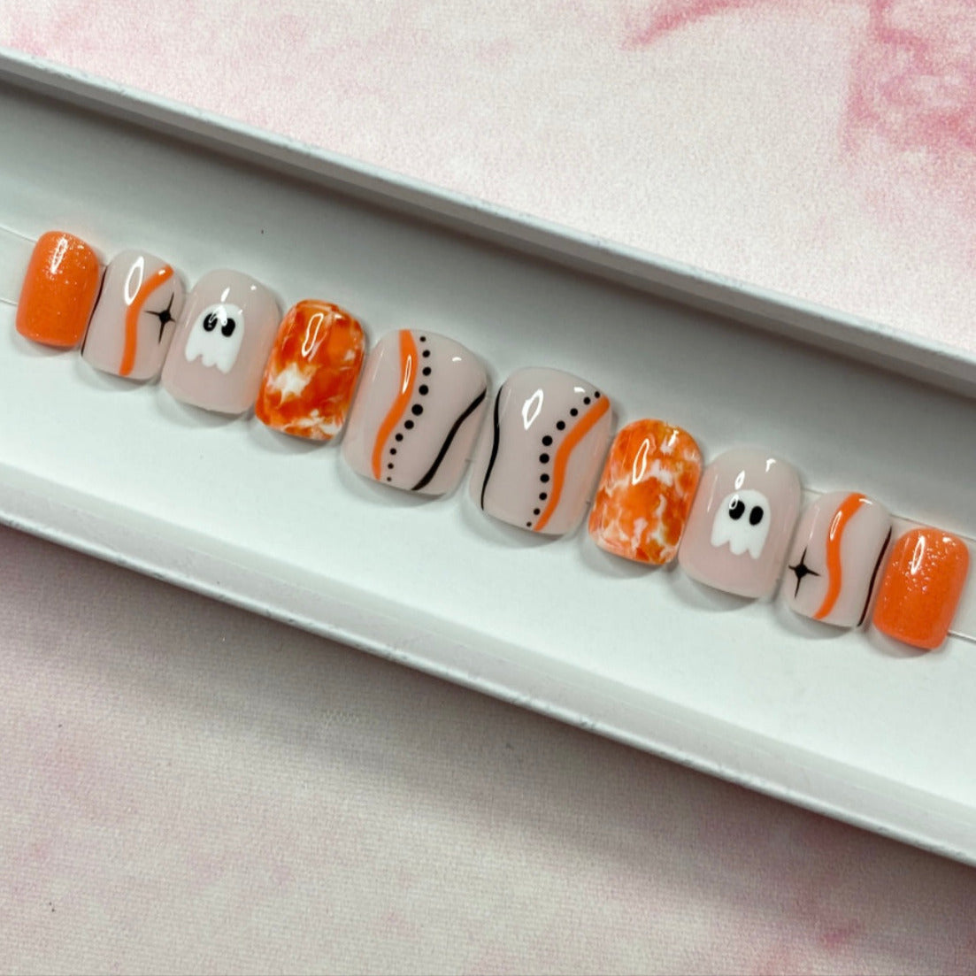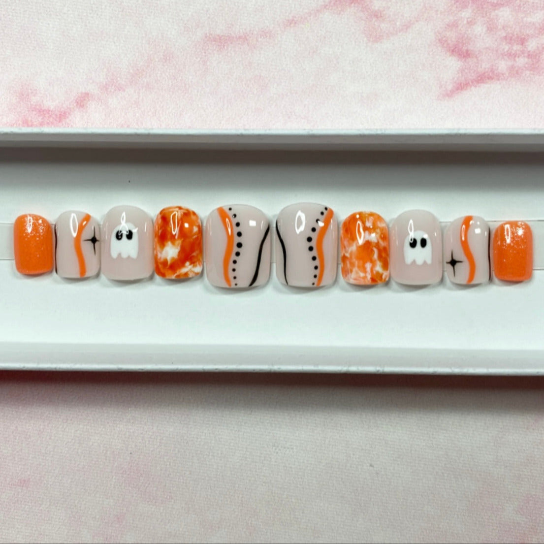 ✨Ghosted!✨ Oranges, Browns, Blacks & Natural With Friendly Ghosts, Swirls, Dots, Stars & Orange Glitter
