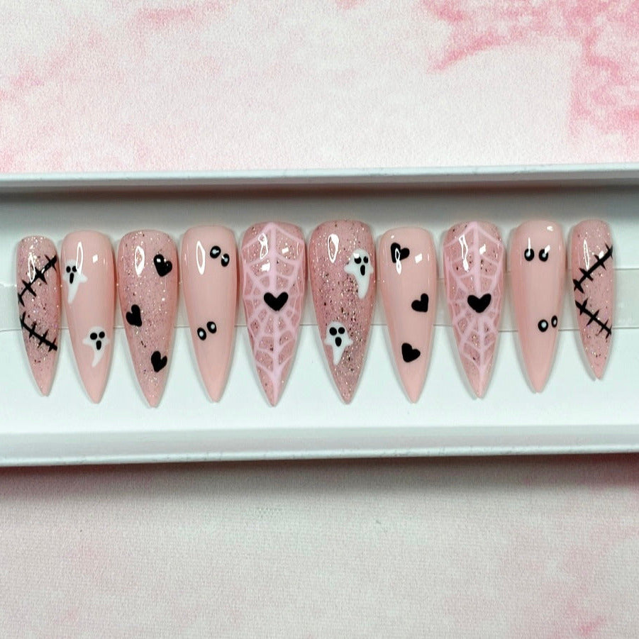 ✨Pinky Spook✨ Pink, Black & White Halloween Design with Glitter, Ghosts, Spider Webs, Hearts, Scars & Spooky Eyes