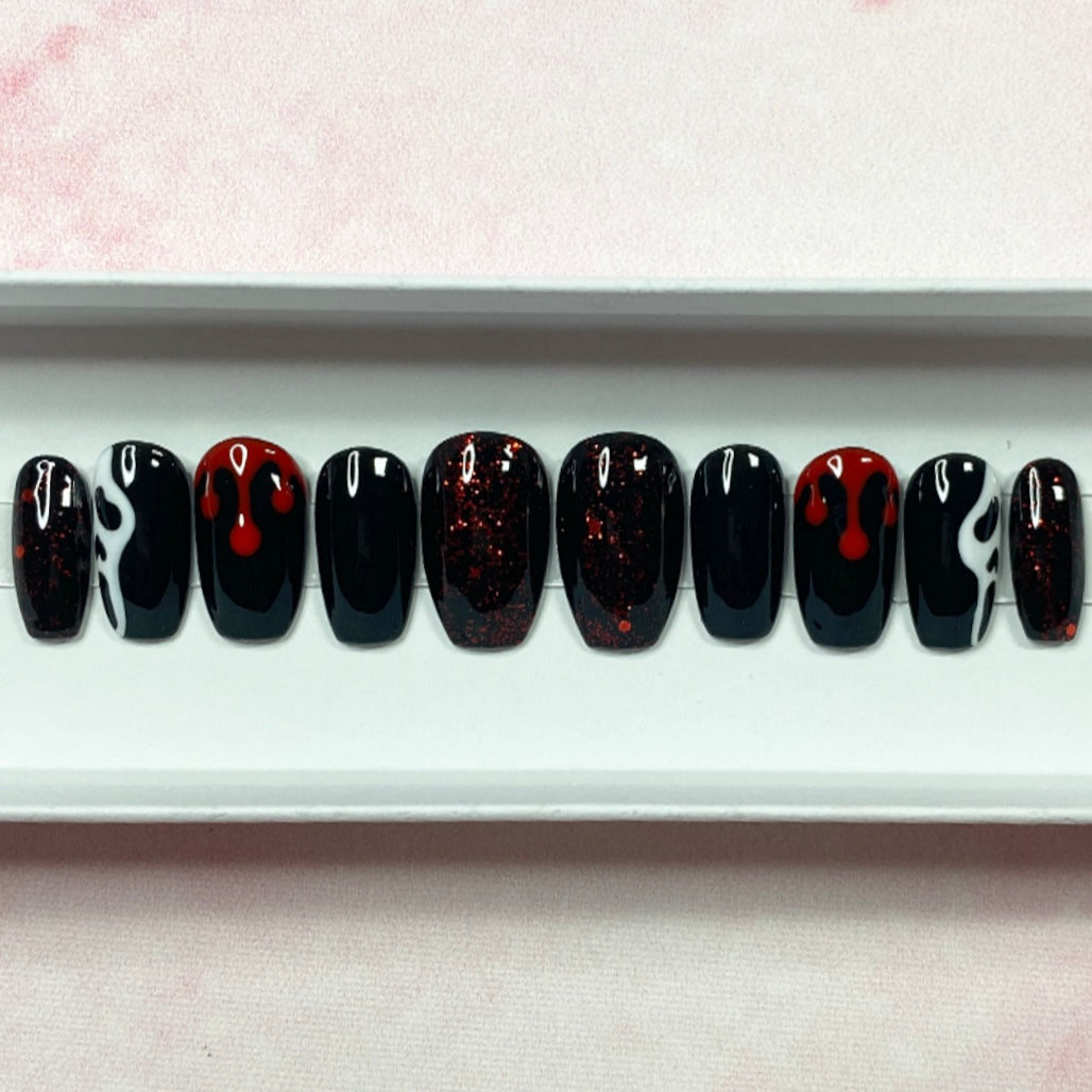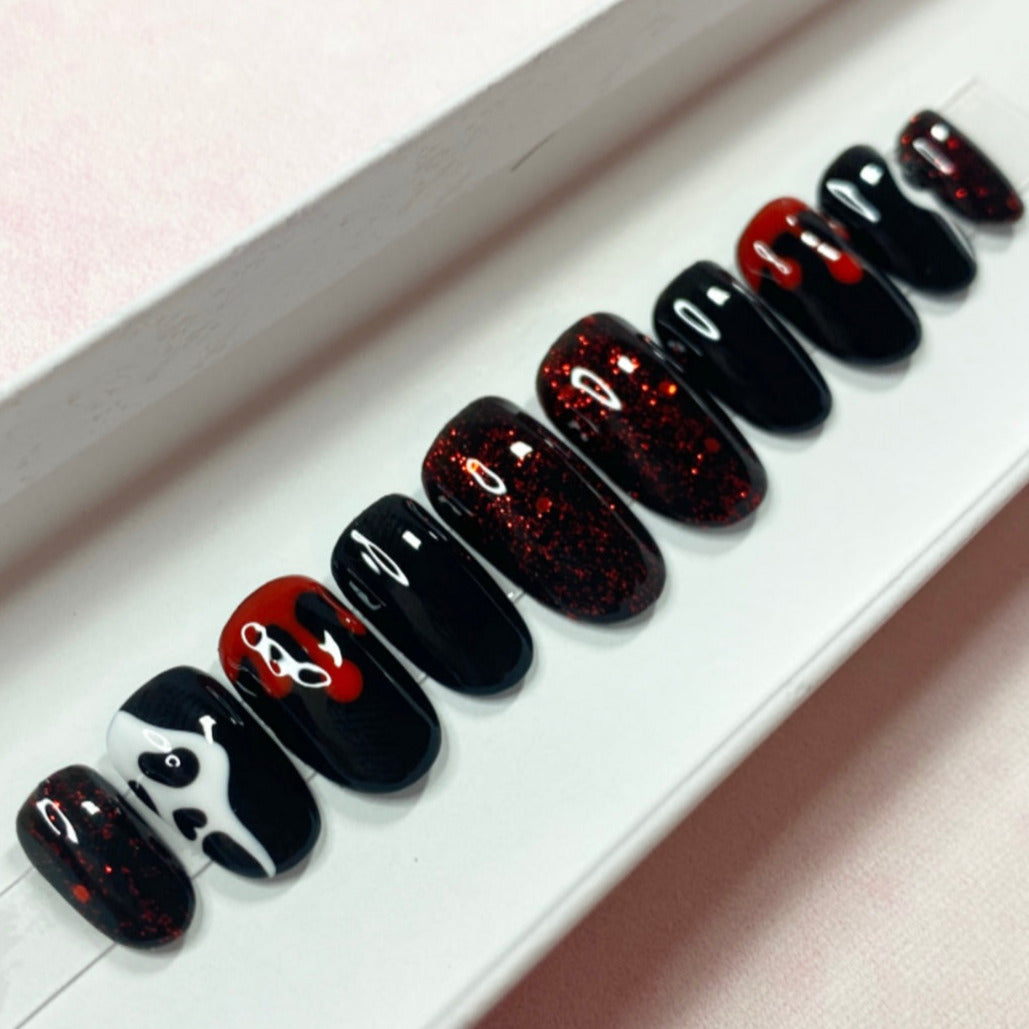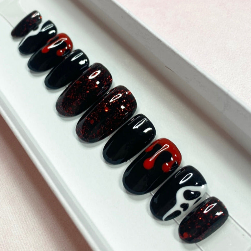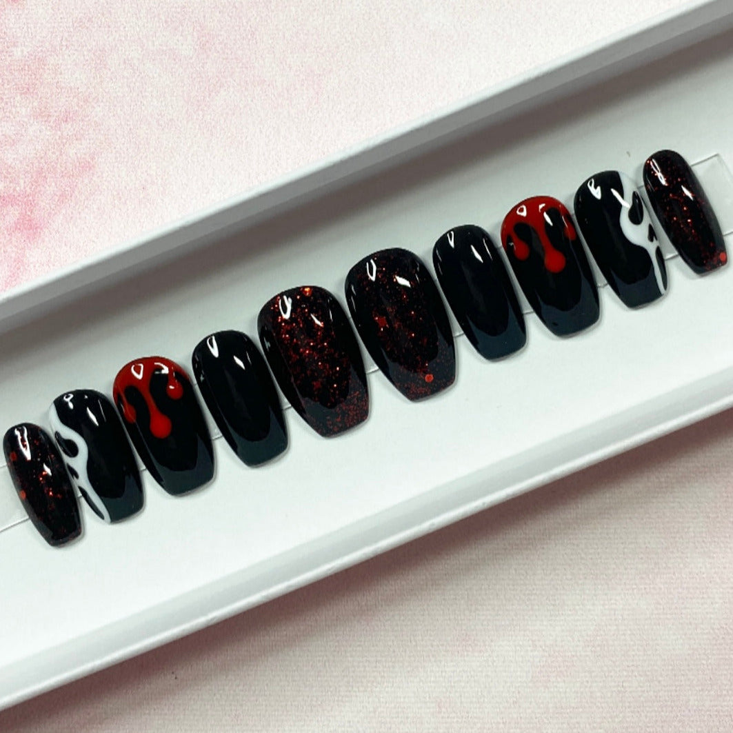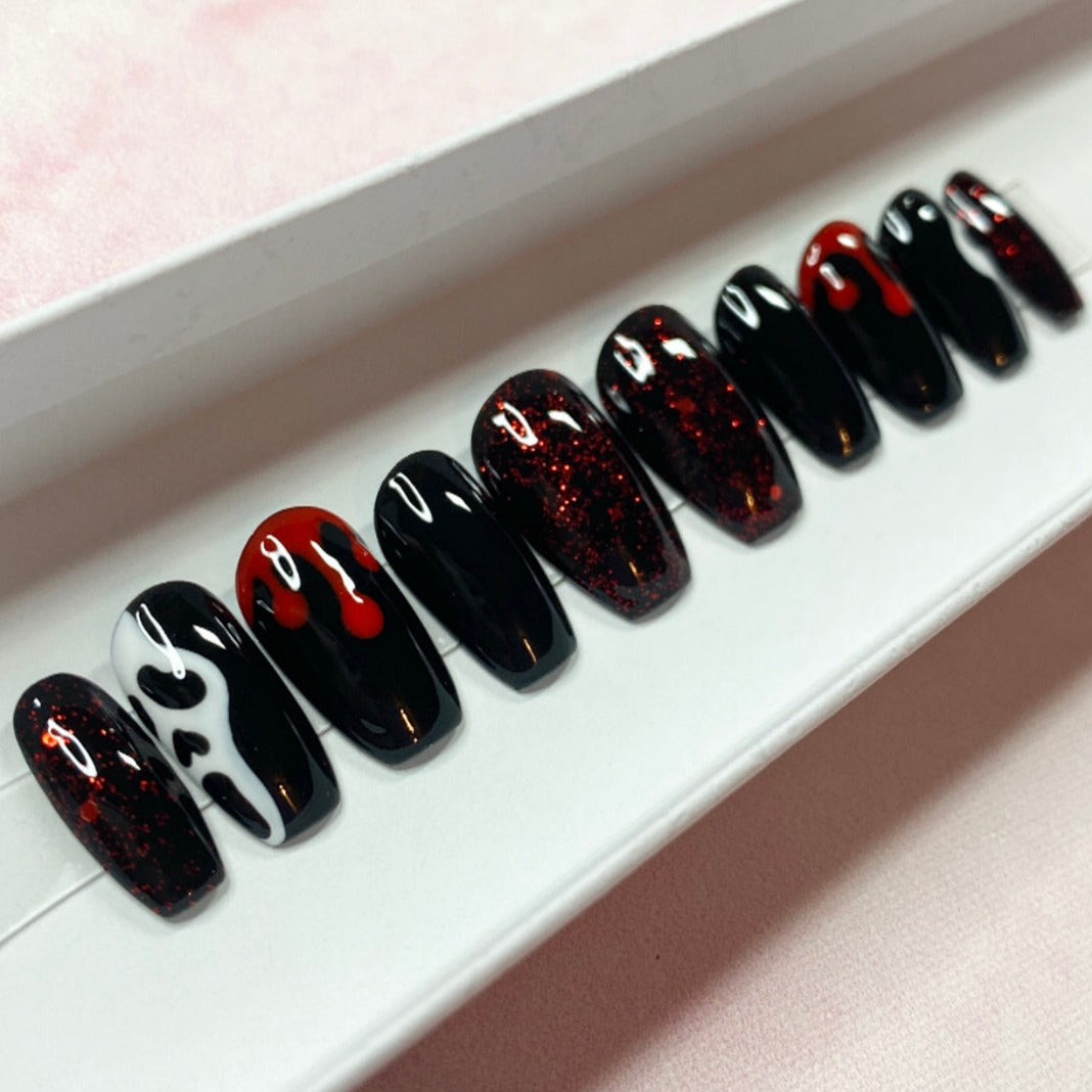 ✨Stab-ulous✨ Black, Red, White with Red Glitter, Blood Drips & Skull Mask Design Perfect For Halloween